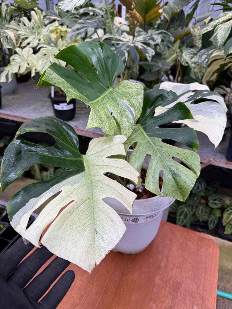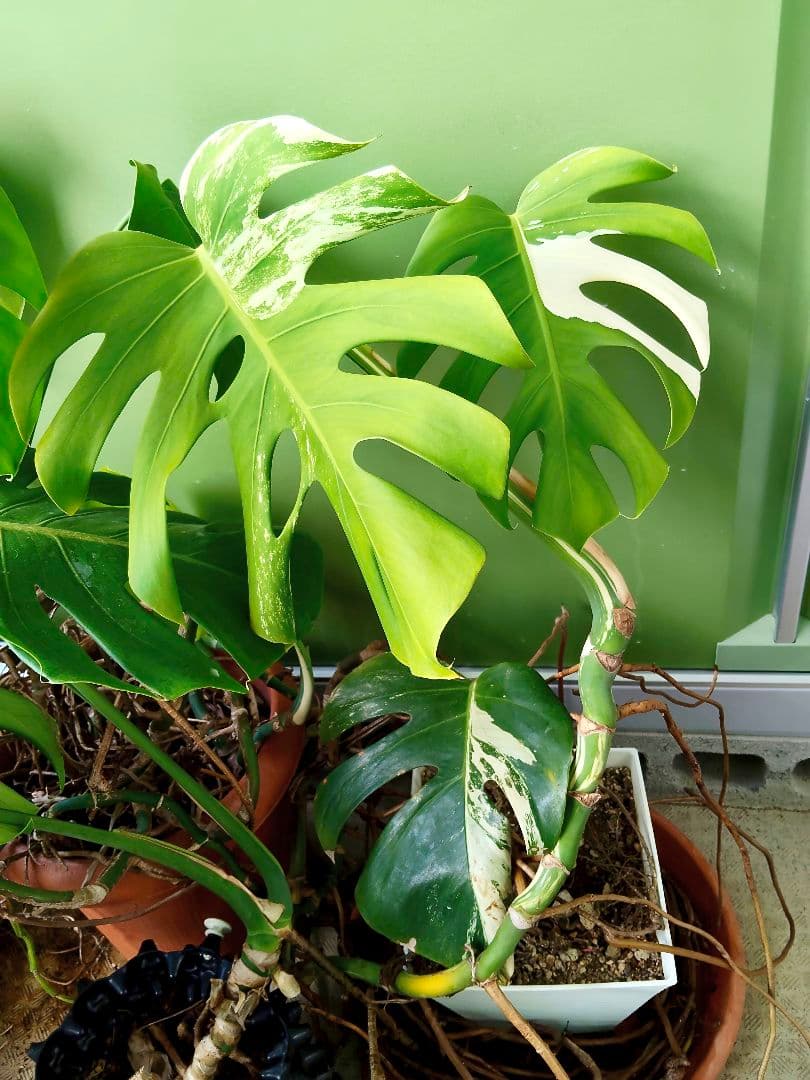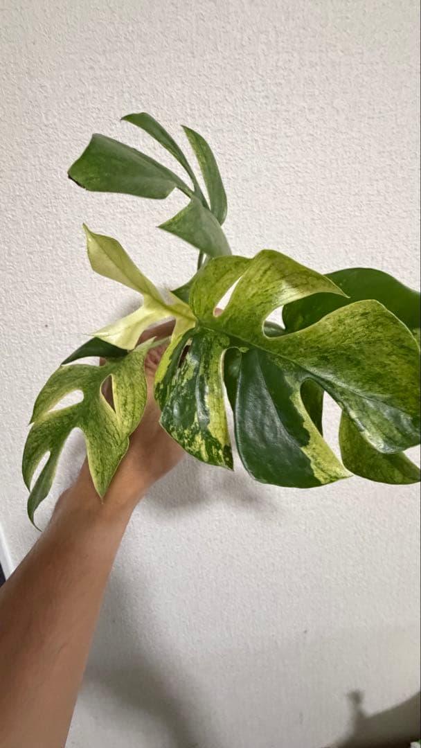 ご覧頂きありがとうございます。モンステラデリシオーサタイコンステレーションイエローモンスター極太幹の苗になります。現在葉は6枚です(散り班とハーフムーンの葉です)さす根張り良好の迫力有る極太幹からの班入り強めの葉が出たイエローモンスターです。冬でも南国気分になれます。それほど背丈が無いので邪魔になりません。環境が良ければどんどん大きくなります。病害虫に強く初心者でも育てやすくインテリアとしても最適で南国気分に浸れます。これからの季節は室温20℃以上で成長します。光は部屋の明かりでも大丈夫です。モンステラデリシオーサタイコンステレーションイエローモンスター極太幹の苗鉢底から高さ約60cm幅80cm程度葉の幅30cm極太幹の太さ直径4cm長さ5cmあります鉢ごと発送致します(受け皿は付きません)22000円から値下げしました。常識内の範囲の値引きは受け付けます。生き物なので写真と変わっている場合が有りますご了承ください。丁寧な梱包を心がけますが、発送後のキズ、折れ等は責任負えませんのでご理解の上購入お願いします。品種名...モンステラ・イエローマリリン
