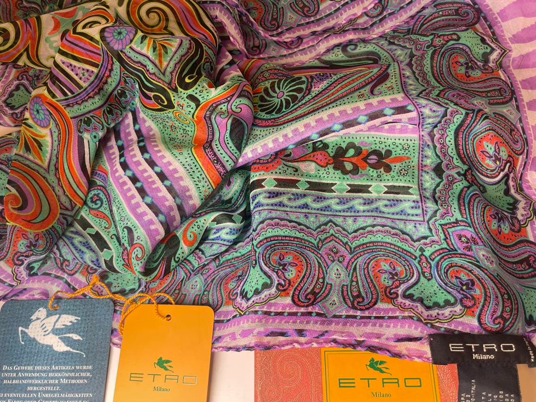 新品未使用中身確認のため一度開封しましたマニプリ ウール シルク ストール カレイド バンダナカラー: ブラックサイズ: 120cm×120cmオリジナル巾着袋付き(写真9枚目参照)即購入可ヘリンボーン地にmanipuriのスカーフ柄がプリントされた色鮮やかなストール。すべてインド製のウール60%シルク40%の特注生地を使用。プリントの加工はシルクスカーフのプリント技法と同様にインドの職人によって1枚ずつ丁寧に手㮈染されています。柔らかく薄手で大判なストールは、使うほど肌に馴染み、長年お使いいただけるアイテムです。フワッと巻いたり、肩に掛けたりとアレンジ自在。重くなりがちな秋冬のスタイリングを華やかにしてくれます。
